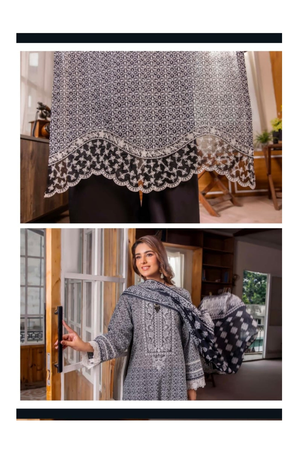Paired with a gracefully patterned dupatta and sleek dyed trousers, this ensemble offers a balanced blend of tradition and modern style. Crafted from lightweight, breathable lawn fabric, it is ideal for elevated day wear and effortless everyday sophistication.
